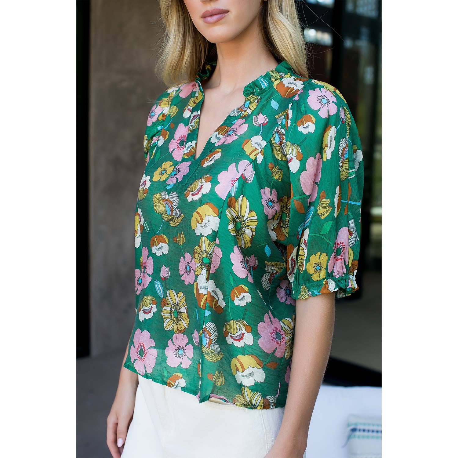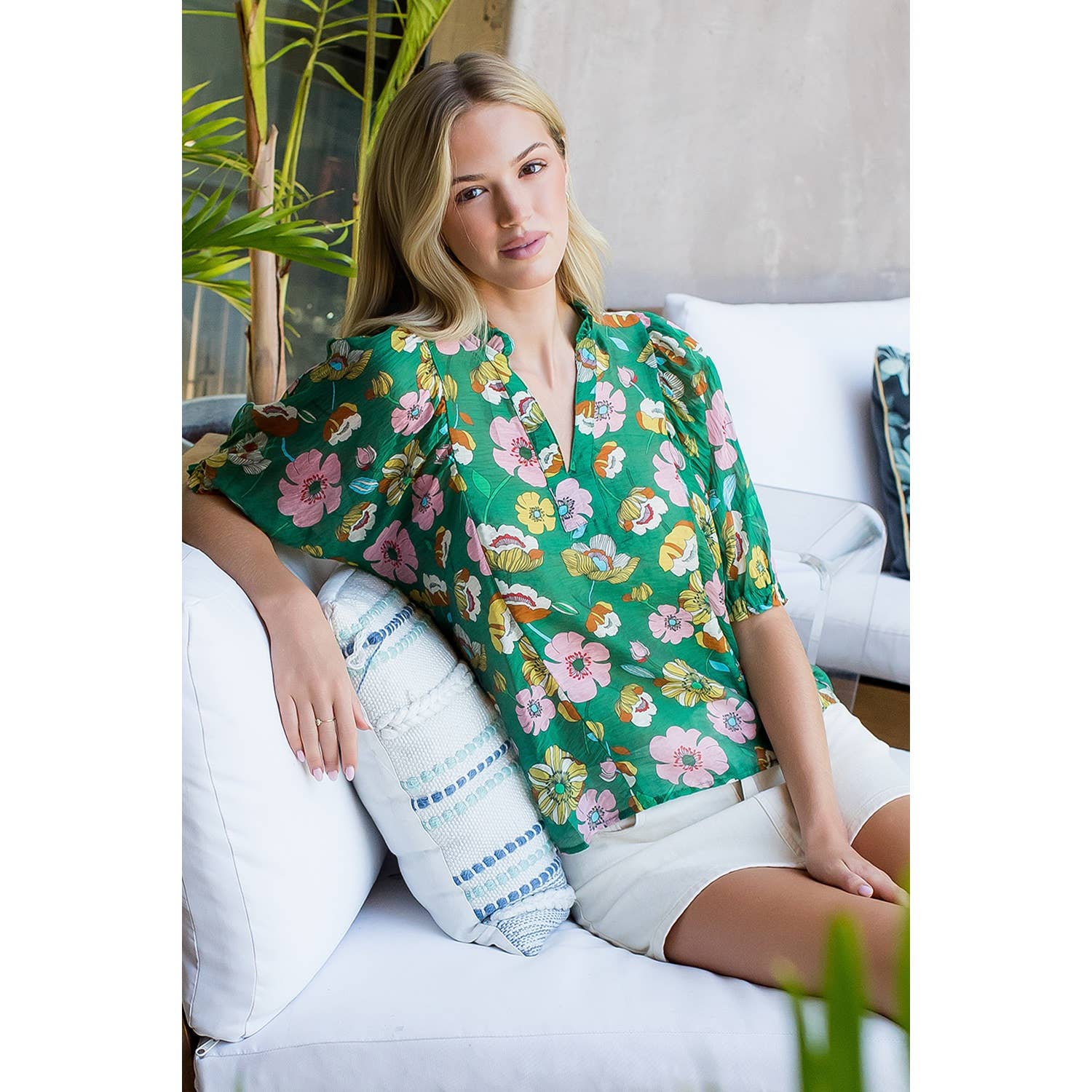 This floral top is sheer material, with adorable puff sleeves! Perfect for staying cool and stylish this summer!